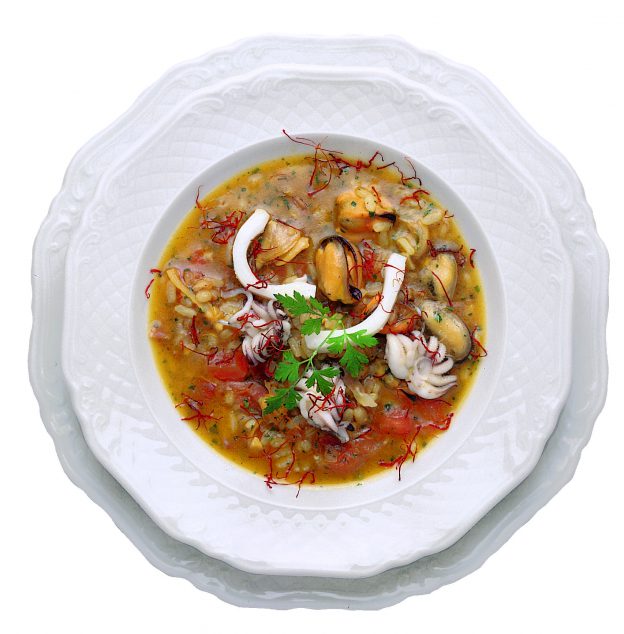 Continuare la cottura del Riso Gallo 3 Cereali Riso Integrale, Avena e Kamut aggiungendo piano piano il brodo sino a che il risotto sia ben al dente.