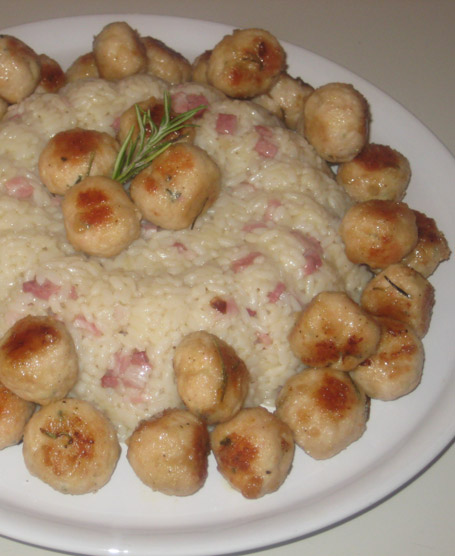 Nel mio caso, ho accompagnato il tutto con delle polpettine di pollo e prosciutto profumate al rosmarino.