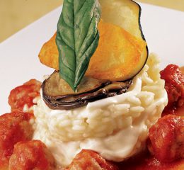 Per il risotto: in un wok antiaderente con dell’olio e una noce di burro, far imbiondire uno spicchio d’aglio.