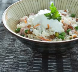 Preparazione della ciambella di riso: mescolare il tutto e versare il composto in uno stampo per ciambella, leggermente unto. Livellare con il dorso di un cucchiaio e infornare a 180° per 45 minuti circa. E’ buona calda, ottima tiepida!