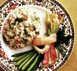 Cottura della ciambella di riso: ungere e cospargere con abbondante parmigiano uno stampo per ciambella di 26 cm di diametro quindi versarvi il riso livellandolo bene. Cospargere la superficie della ciambella di riso con pangrattato e cuocere in forno a 220° per 45 minuti circa.