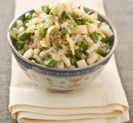 Preparazione dell’insalata di riso: cuocete il Riso Gallo Blond per 10 minuti in abbondante acqua salata, scolatelo e passatelo sotto l’acqua fredda per interrompere la cottura.