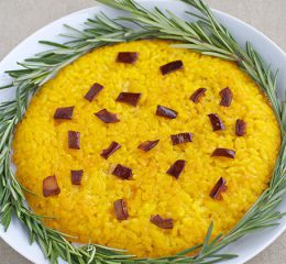 Tagliare il pecorino a dadini e lo speck a striscioline. Aggiungere all’insalata di riso gli ingredienti e condire con una emulsione di olio e limone e una spolverata di prezzemolo.