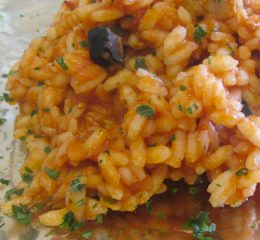 In una padella tostare i pinoli per 2 minuti. Aggiungere tutti gli ingredienti al riso ed in ultimo, come condimento, la salsa al basilico.