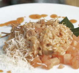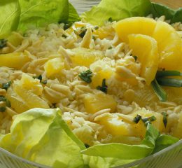 Il giorno dopo lo tagliamo ed inpiattiamo. Chiudiamo il piatto di questo insolito sushi con scaglie di mandorle e un filo d’olio.