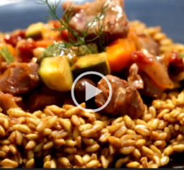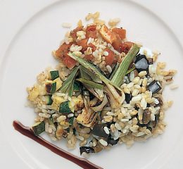 Tagliare la zucchina a rondelle e cuocerla in un tegame antiaderente con l’olio e lo scalogno affettato. Una volta cotte, raffreddare su un vassoio. Tostare leggermente in forno l’avena fino ad ottenere un colore biondastro. Tagliare a dadini di 1 cm per lato la formaggella e versarla sul riso. In una ciotola emulsionare il succo di limone con 150g di olio, sale e pepe e condirvi l’insalata di riso, dopo aver aggiunto i rimanenti ingredienti.