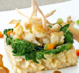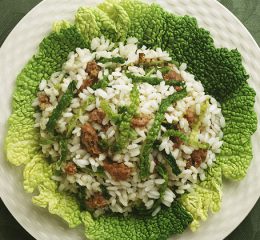 Cuocere il riso basmati in acqua bollente senza sale, per 5 minuti, poi scolarlo e riporlo in una pirofila da forno. In un pentolino a parte, portare lentamente a ebollizione il latte, con l’aggiunta di una stecca di vaniglia, la buccia di un limone e un pizzico di sale. Prima che si formi una sottile pellicola, rimuovere il latte dal fuoco, filtrare e versarlo nella pirofila sopra il riso con l’aiuto di un colino. Coprire la pirofila con un foglio d’alluminio e cuocere in forno ventilato a 150° per circa mezz’ora. In una terrina sbattere le uova con lo zucchero e mescolare fino a ottenere una crema. Infine, incorporare il burro continuando a mescolare.