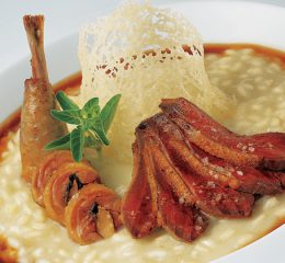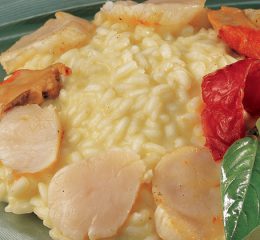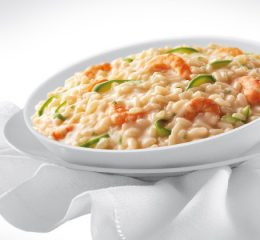 In una casseruola imbiondire la cipolla con l’olio di oliva. Unire il riso e tostarlo. Coprire con il fumetto e rimestando con una spatola continuare la cottura. A cottura ultimata mantecare con il burro, la panna, il parmigiano e i pezzi di asparago.