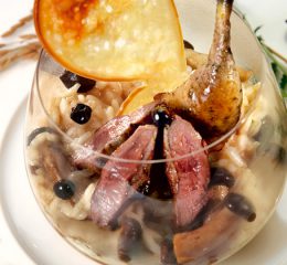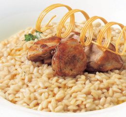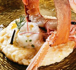 Preparazione del riso agli scampi: spellate i pomodorini e fateli saltare rapidamente in un tegame con poco olio assieme a uno scalogno tritato e all’aglio. Scaldate poco olio in una casseruola, unite il rimanente scalogno e fatelo imbiondire, quindi aggiungete il riso e 4 code di scampo tagliate a pezzi. Continuate la cottura aggiungendo alternativamente e poco per volta il fumetto e il brodo vegetale bollenti mescolate di tanto in tanto.