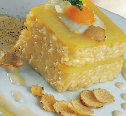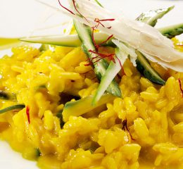 Nella stessa casseruola dei gamberi tostate il riso in poco burro. Aggiungete lo zafferabi e bagnate poco per volta con il fumetto. A cottura ultimata mantecate con il succo delle teste e il romesco. Lasciate sul fuoco per un altro minuto, quindi servite il risotto guarnendolo con 3 gamberi.
