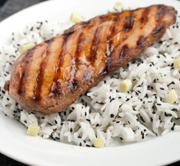 Ho accompagnato il riso con un succo estratto di arance, pompelmo rosa, ananas, carote e mela con l’aggiunta di un pezzetto di zenzero.