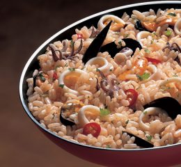 Unire al riso alla salsiccia i pomodorini cotti e aggiustare di sale e pepe.