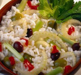 Cuocere il riso bianco in acqua bollente salata. Nel frattempo soffriggere nell’olio l’aglio e il peperoncino. Aggiungere i pomodori, le olive nere snocciolate, il sale e il prezzemolo. Lasciar cuocere a fuoco lento. A pochi minuti dalla fine della cottura aggiungere il tonno sgocciolato. Scolato il riso bianco e mantecarlo nel sugo.