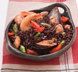 Preparazione del riso con capesante: cuocete in forno i peperoni precedentemente lavati e cosparsi con olio e sale per 25 minuti a 190°C, poi puliteli eliminando la pellicina esterna e i semi. Soffriggete la cipolla nell’olio, aggiungete i peperoni, aggiustate di sale e zucchero, lasciate cuocere per alcuni minuti poi frullate sino a ottenere una crema liscia e omogena.