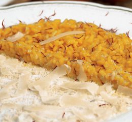 Unire il Traminer e farlo evaporare, il carciofo tagliato molto sottile, lo zafferano e il brodo piano piano fino a portarlo a cottura.