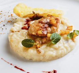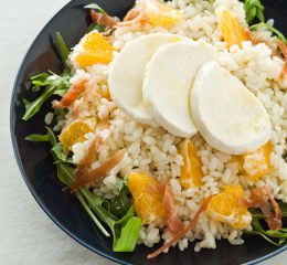 Fate scaldare poco olio in una risottiera, aggiungete la cipolla tritata, versate il riso e tostatelo, quindi continuate la cottura aggiungendo poco per volta la crema di formaggio avendo cura di tenere il fuoco basso e rimestando continuamente. Aggiustate di sale. Quando il risotto è molto al dente e ancora abbastanza liquido, mettetelo in forno a 180 °C per 3-4 minuti. Nel frattempo passate i filetti di triglia sulla piastra dalla parte delle pelle. Trasferite il riso con asparagi sui piatti di portata avendo cura di disporlo tutto da un lato e mettete dall’altra parte i filetti di triglia deponendovi sopra gli asparagi.