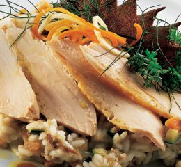 Presentare a tavola il vostro riso con capesante e basilico.