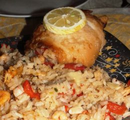 Preparazione del riso: mettete a marinare l’agnello assieme con lo spicchio di aglio con la camicia, il rosmarino, un filo di olio, 1/2 bicchiere di vino e 3 grani di pepe. Scaldate poco olio in un pentolino, unite il cipollotto tritato, sfumate con il vino bianco, aggiungete il peperoncino e il vino cotto, salate e cuocete per 6-7 minuti tenete da parte.