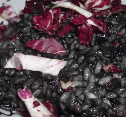 Prendetene il succo e mettete da parte i chicchi per la decorazione finale. Rosolate lo scalogno tritato con un po’ di olio e aggiungete il Riso Gallo Risotti, tostandolo e sfumandolo con il vino, come per un qualsiasi risotto.