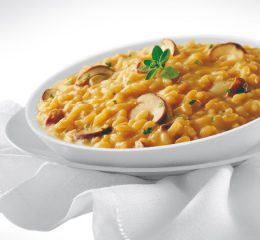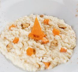 E il riso con ragu’ di fegatelli di pollo e fonduta di caprini al profumo di noce è pronto per essere servito.