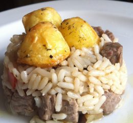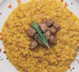 E degusta poi il tuo riso con trancio di branzino dorato.