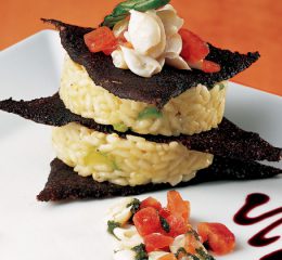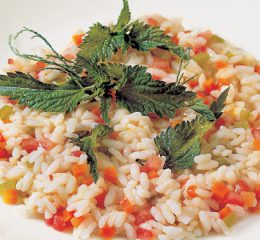 Ed ecco che il riso con verdure e fonduta di pomodoro alla mentuccia selvatica è pronto.