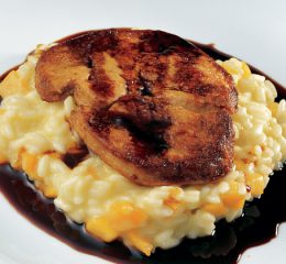 Qualche minuto prima di fine cottura del Riso Carnaroli Gran Riserva aggiungere 100 gr di caciotta di Urbino a dadini, una macinata di pepe nero, della buccia di limone grattugiata e mantecare bene per rendere cremoso il risotto. Pronto per essere servito.