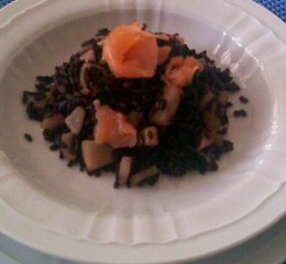 Grigliare i quattro spicchi di trevisana insieme alle sei fette di speck, due delle quali tagliarle a julienne. Mettere il riso in un’insalatiera e aggiungerci la trevisana e lo speck tagliati a julienne, condire a piacimento e poi aggiungere i crostoni di pane.