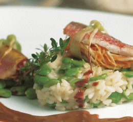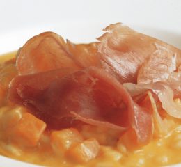 Quando il risotto è al dente incorporare il Castelmagno, ritirare la casseruola dal fuoco e mantecarlo con l’olio extravergine. Far riposare per un minuto e servire il riso Carnaroli morbido al piatto. Guarnire con fettine di mostarda di fichi.