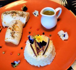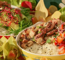 Unire al riso venere le ostriche, l’avocado, le uova di salmone e incorporare la maionese.