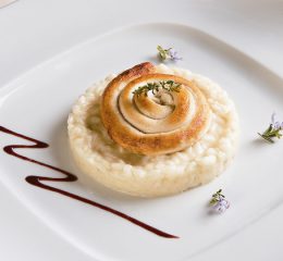 Per il risotto al nero di seppia: in una casseruola fare imbiondire il burro, unire il riso e farlo tostare per un minuto, salare leggermente con sale integrale mescolando con un cucchiaio di legno. Bagnare con il vino bianco e farlo evaporare, continuando a mescolare. Bagnare con acqua bollente e, ogni volta che questa viene assorbita, aggiungerne di nuova. Mescolare di tanto in tanto. Aggiungere il nero di seppia e proseguire la cottura.