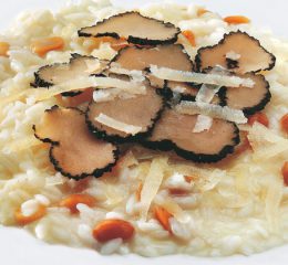 In una risottiera fondete metà del burro, unite lo scalogno tritato, lasciate rosolare poi tostate il riso Carnaroli e portate a cottura bagnando, poco per volta e rimestando, con il brodo bollente. Qualche minuto prima di terminare la cottura, unite le salsicce sbriciolate, le olive denocciolate e tagliate a filettini (tenetene alcune da parte per la decorazione) e il Parmigiano.