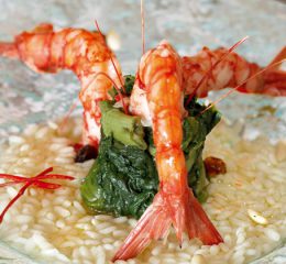 Preparazione del riso carnaroli: in un tegame soffriggere le verdure con poco olio extravergine d’oliva, a parte rosolare gli stinchi leggermente infarinati, aggiungerli alle verdure. Bagnare con il vino, lasciare evaporare, mettere il brodo, il pomodoro, salare e pepare e far cuocere circa 45 minuti. Terminare con le erbette aromatiche e tenere al caldo.