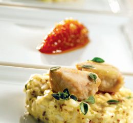 Preparazione del risotto: pulite le animelle, tagliatele a cubetti di 2 cm e fatele rosolare in una padella con 2 cucchiai di olio per 10 minuti circa. Bagnate con il Marsala, lasciate evaporare, aromatizzate con il timo, aggiustate di sale e pepe e tenete da parte. Mondate il porro, quindi tritatene 50 g e tagliate il rimanente a rondelle.