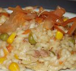 Tagliare alla julienne gli spinaci, disporli al centro del piatto e adagiarvi sopra il risotto con spinaci.