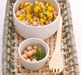 Mettere il riso con zucca ‘all’onda’ nei piatti guarnendolo con alcuni pezzetti di zucca e le punte di spinaci rosolate nel burro.