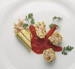 A questo punto incorporate la besciamella di gamberi e completate la preparazione.