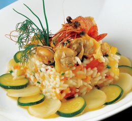 Decorate con i gamberoni tenuti da parte e servite il vostro riso della seduzione.