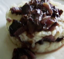 Soffriggete lo scalogno in una casseruola, unite il riso, bagnatelo con il vino rimasto, unite metà sugo e terminate la cottura con il brodo bollente. Togliete dal fuoco, mantecate con il formaggio e il burro, quindi trasferite il risotto in quattro stampini da savarin foderati con le foglie di verza sbollentate e passate in forno per un minuto. Sformate i savarin di riso, conditeli con il sugo di anatra ben caldo e servite.
