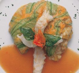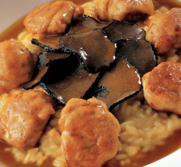 Preparazione del savarin di riso: oliate leggermente un tegame, aggiungete la cipolla, la carota e il sedano tagliati a pezzetti e lasciate appassire. Aggiungete l’anatra (il petto separato dalle cosce), fate rosolare, bagnate con 2/3 del vino, lasciate evaporare, aggiungete i pomodorini, il rosmarino, l’alloro e il ginepro.