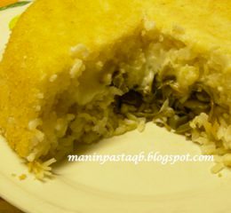 Sistemare tutto in una pirofila imburrata a strati alternati di melanzane fritte e riso, e fettine di mozzarella. Terminare decorando in superficie con quello che rimane della salsa e rondelle di melanzane fritte. Mettere in forno caldo per circa 15 minuti. Il timballo di riso è pronto per essere servito e gustato.