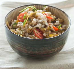 Preparazione della zuppa di riso: dopo aver ammollato i fagioli per 12 ore, farli bollire con il rosmarino per un quarto d’ora, aggiungere le fave, i piselli, il riso e dopo altri 15 minuti aggiungervi le punte degli asparagi.