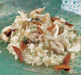 Lasciare bollire per 5 minuti e togliere dal fuoco. Lavare le cozze e in una padella dai bordi alti soffriggere la cipolla, l’aglio e il lardo con olio extravergine; aggiungervi le cozze e farle aprire.