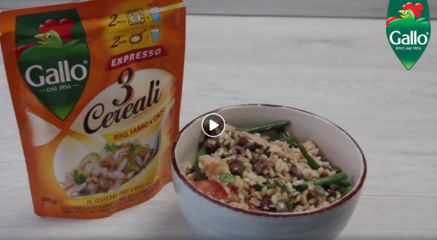 Cuocere in una casseruola con acqua bollente salata i tre cereali per circa 16 minuti. Nel frattempo, unire in una terrina le foglie di spinacino fresco già lavate, i semi di zucca, la mela verde tagliata a fettine, il pollo grigliato tagliato a tocchetti, l’olio evo, il sale e mescolare. Scolare i 3 Cereali Integrali Riso Gallo e unirli al composto. Servire l’insalata tiepida con scaglie di parmigiano!