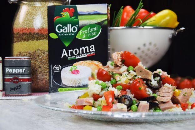 Lessare il Riso Gallo Aroma tenendolo al dente, tenendolo indietro di un paio di minuti, quindi scolarlo su una teglia ampia e livellarlo, facendolo raffreddare. Tagliare tutti gli ingredienti della dimensione desiderata e tritare finemente l’erba cipollina. Condire il riso con tutti gli ingredienti delicatamente, regolando di sale e di pepe. Lasciare riposare almeno mezz’ora prima del servizio, in modo da amalgamare i sapori.